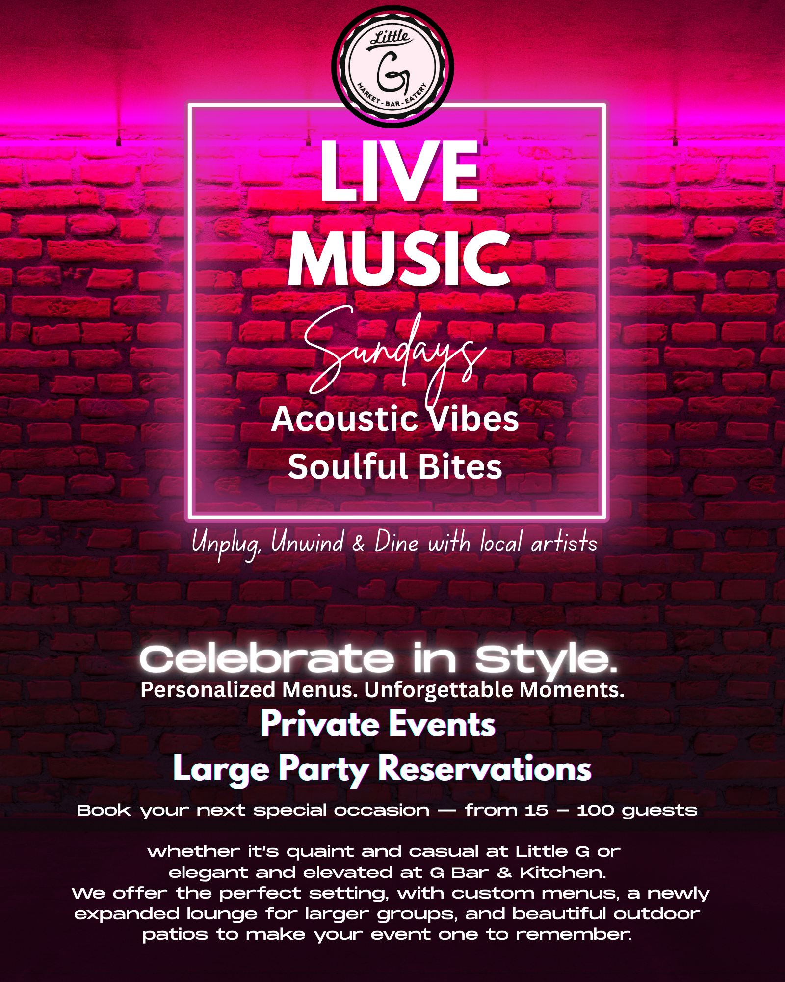 Choose from our intimate fine dining G Bar & Kitchen or our newest casual restaurant Little G.